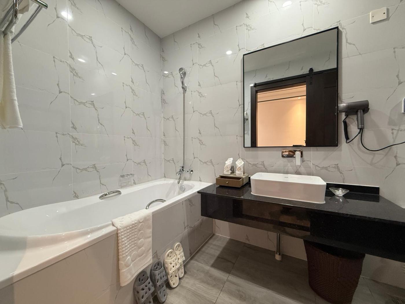 Suite. This suites special feature is the hot tub. This spacious suite consists of 1 living room, 1 separate bedroom and 1 bathroom with a walk-in shower and free toiletries. The air-conditioned suite provides a flat-screen TV with cable channels, soundproof walls, a minibar, a dining area as well as city views. The unit offers 4 beds.